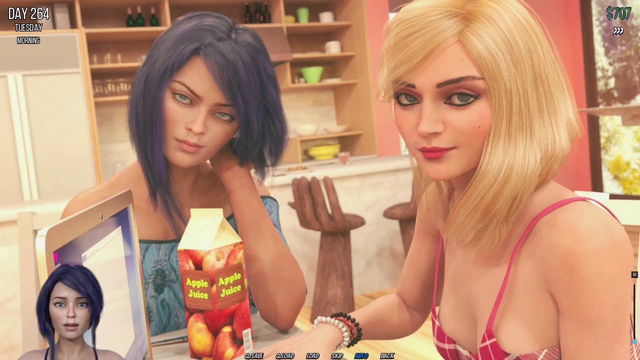 Heiße Mama in einem dampfenden Porno-Spiel-Visual Novel