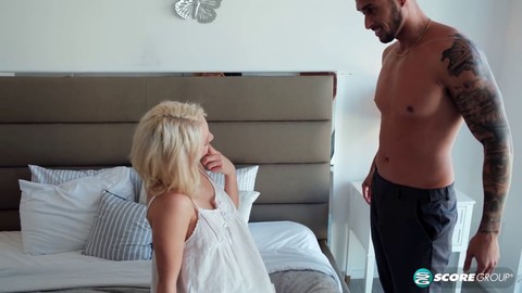 Die platinblonde Milf Desiree Eden geht tief mit ihrem Enkel.